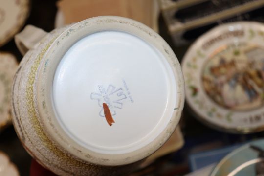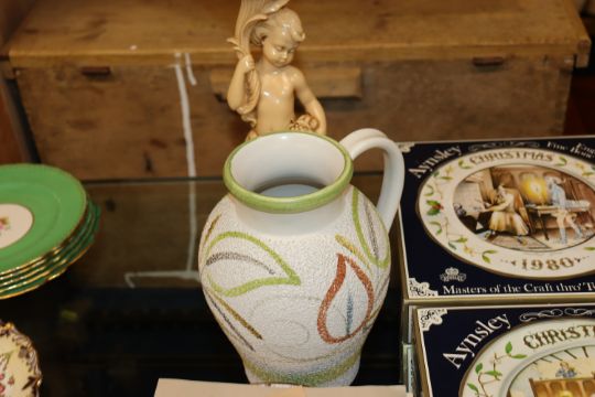 A quantity of Aynsley Christmas collector's plates; Royal Doulton collector's plate; cherub ornament; glass pot; and a Langley Pottery baluster jug