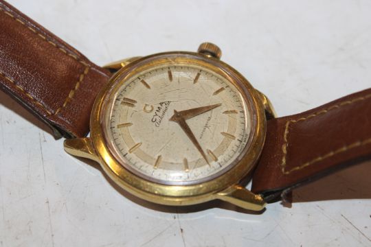 A Cyma gold plated cased automatic wrist watch