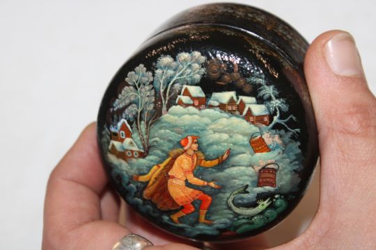 Chernov Kolui Russian lacquered box, entitled "At The Pikes Behest" label dated 21st May 1990
