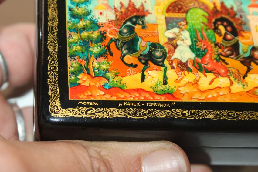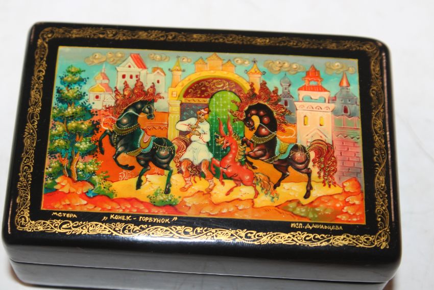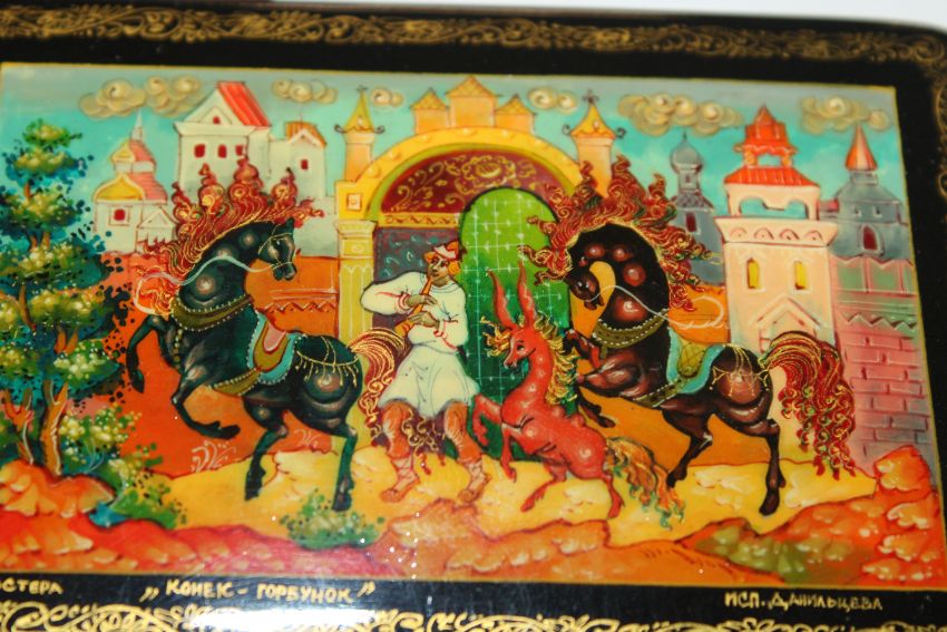 Danilsteva Mstera Russian lacquered box entitled "Hump Back Horse"