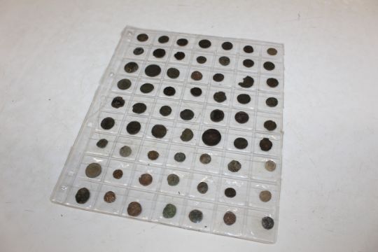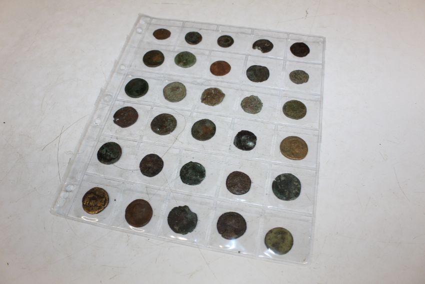 A folder containing Roman coins, vendor reports all found in East Anglia