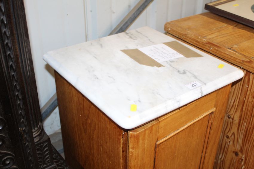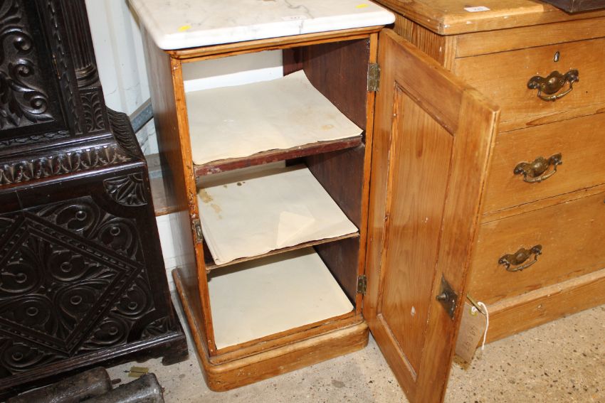 A stripped pine marble topped pot cupboard