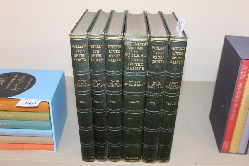 Butler's Lives of the Saints, five volumes; and Butler's Lives of the Saints Supplementary volume