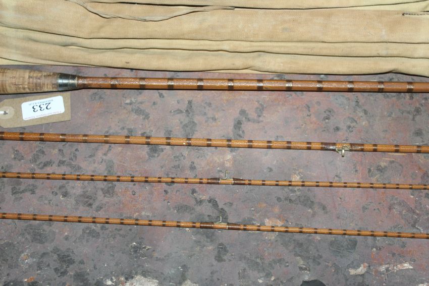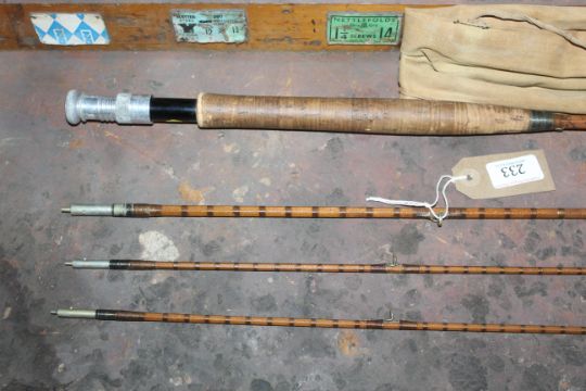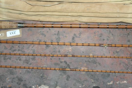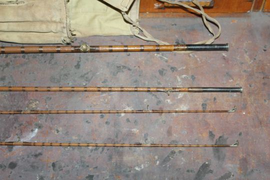 A Hardy's four piece split cane rod with bag