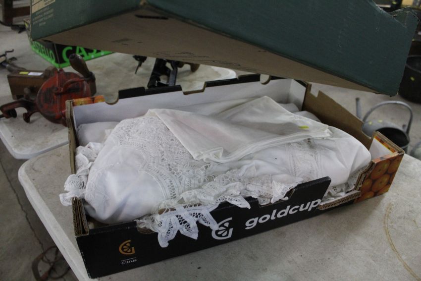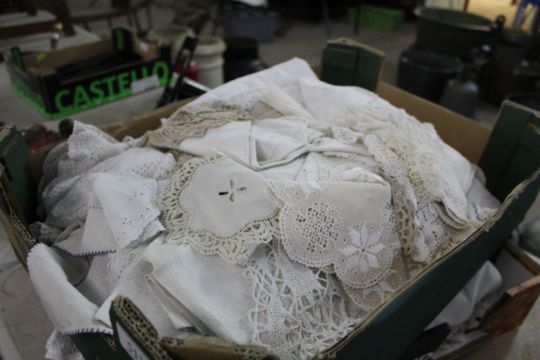 Two boxes containing a large quantity of table linen