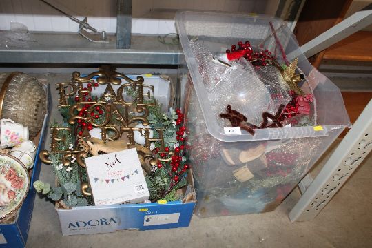 Two boxes containing various Christmas decorations
