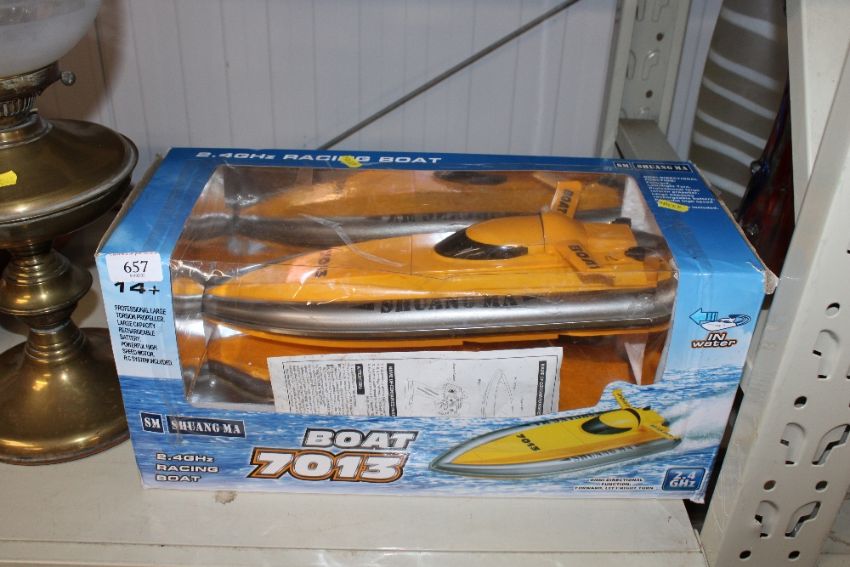 A radio controlled racing boat