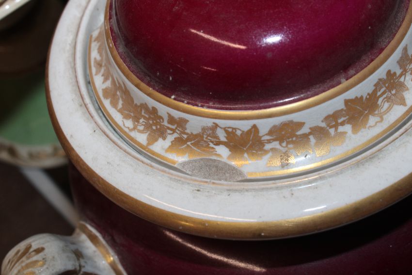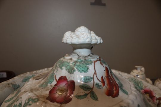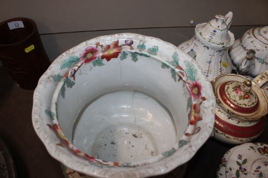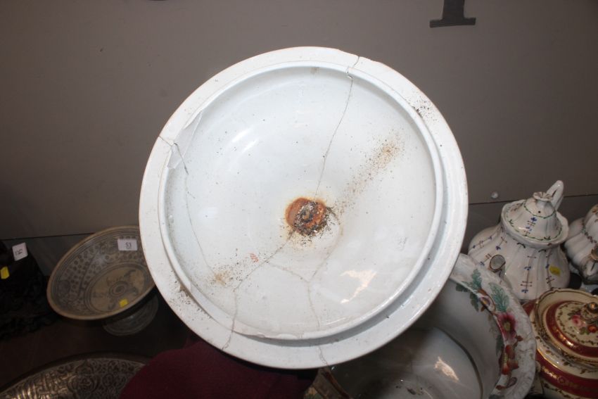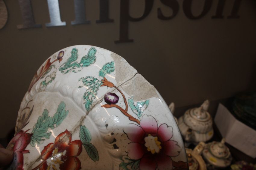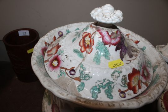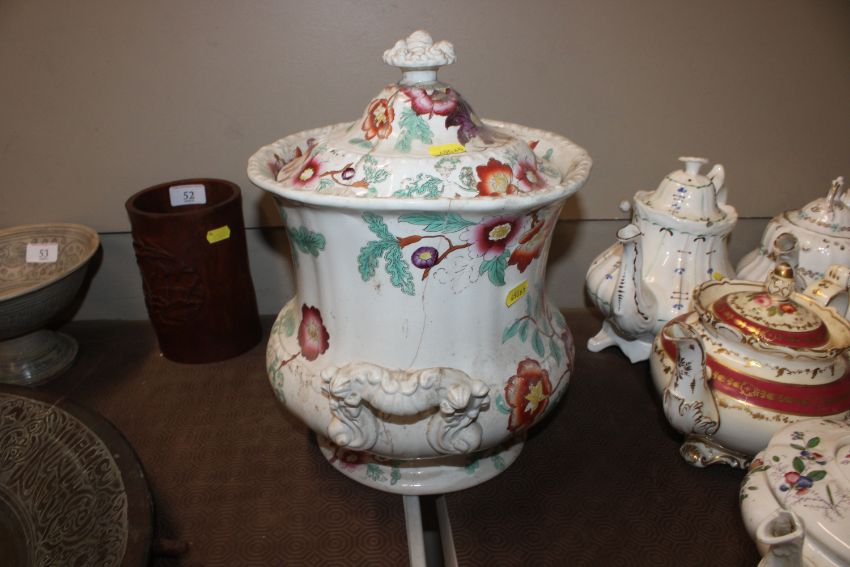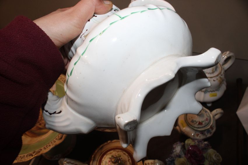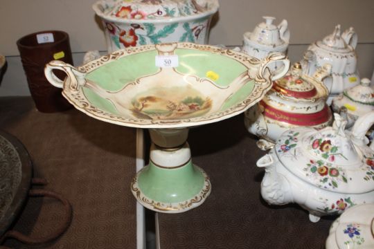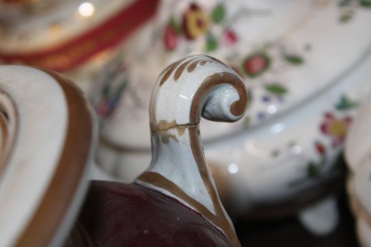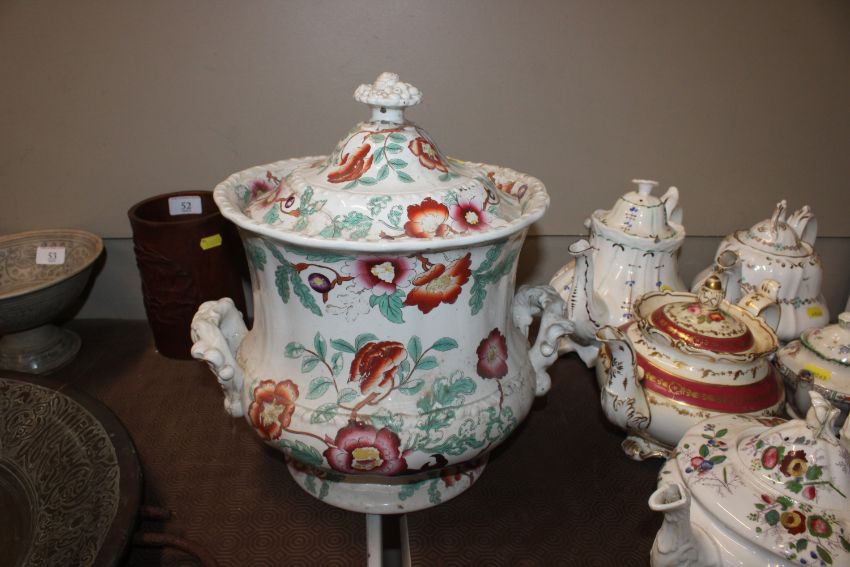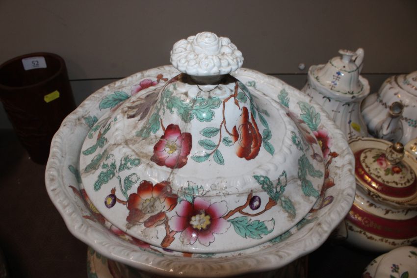 A quantity of 19th Century and later teapots, a soup terrine AF, a comport, an antique teapot AF