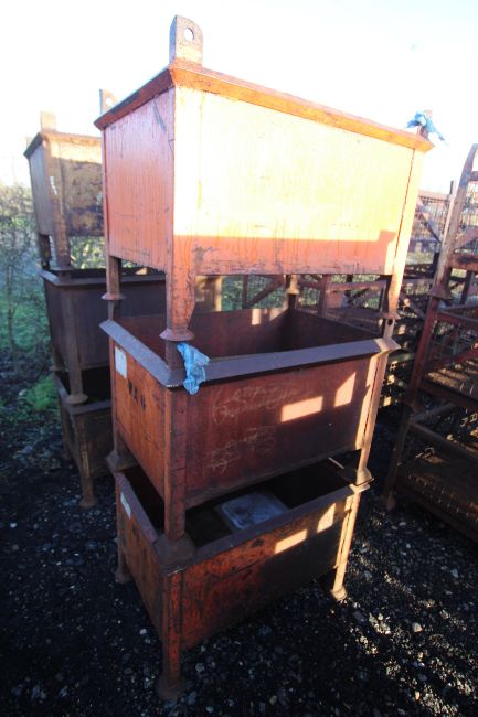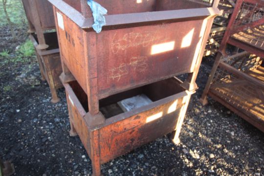 3x metal stillages with sheet metal sides, approx. 26" deep x 37" wide x 27" high. V