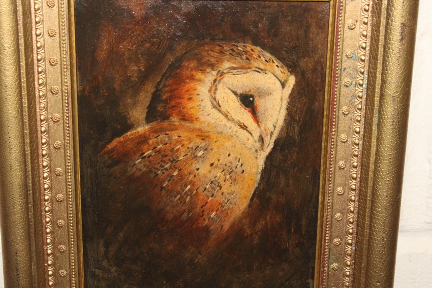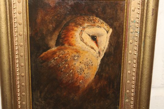 Unsigned oil on board, study of a barn owl