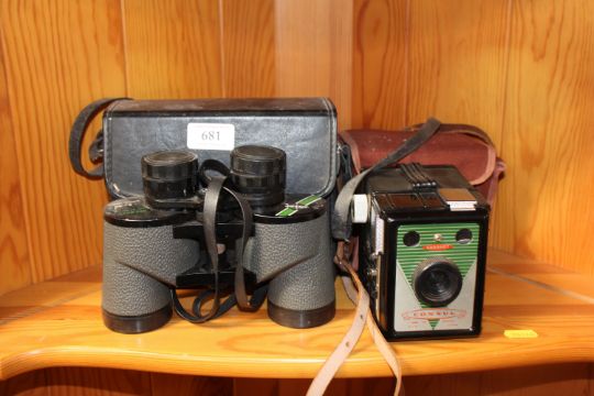 A pair of Swift 8 x 40 binoculars in case together with a Coronet Consul camera