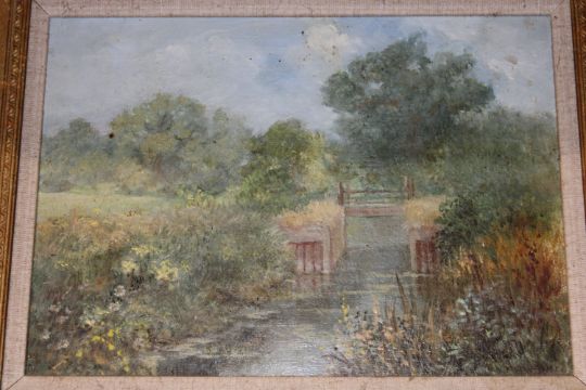 M H Wenn, oil on board study of a landscape scene, contained in gilt frame