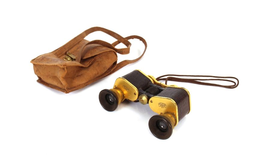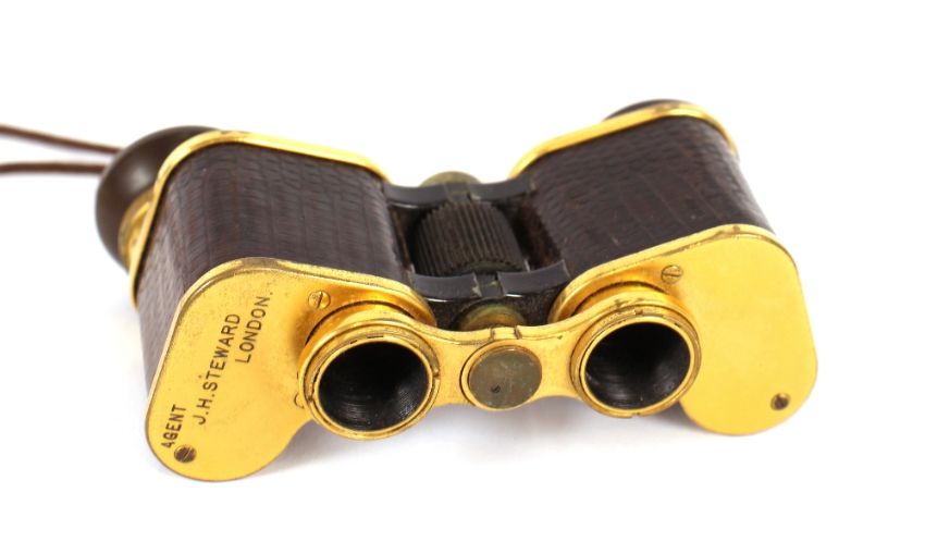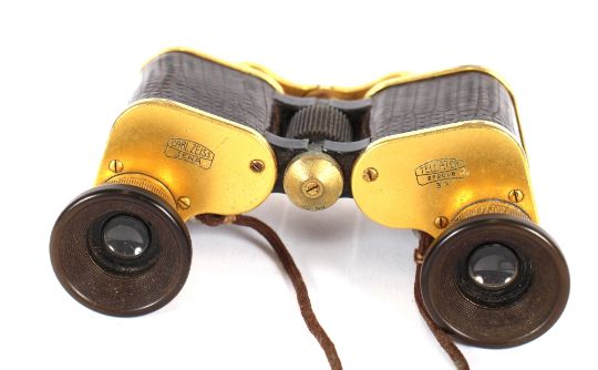 A pair of Carl Zeiss folding opera glasses, retailed by J.H. Steward, London in leather carrying case