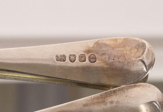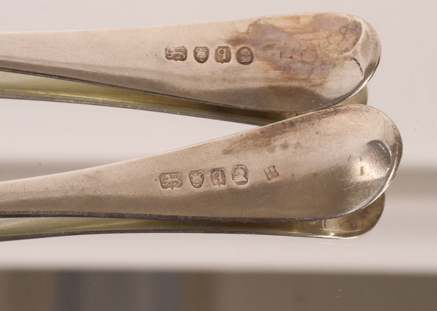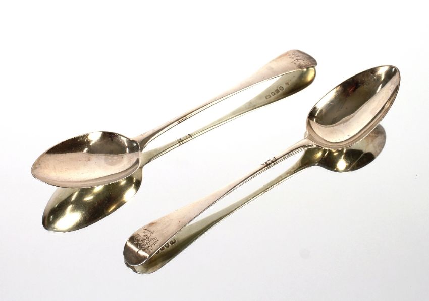 A pair of George III Old English pattern tablespoons, London 1791, monogrammed, 136gms