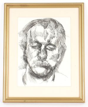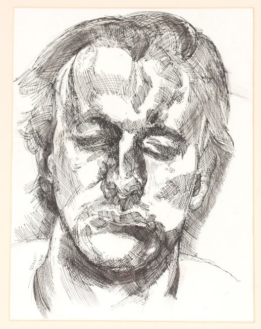 After Lucian Freud, self portrait, pen and ink, 29cm x 23cm