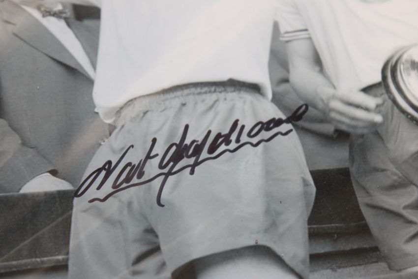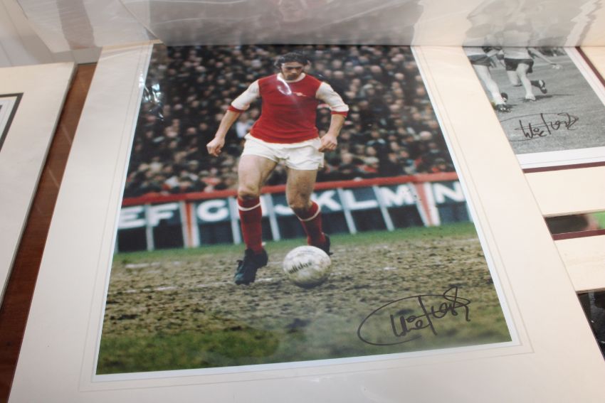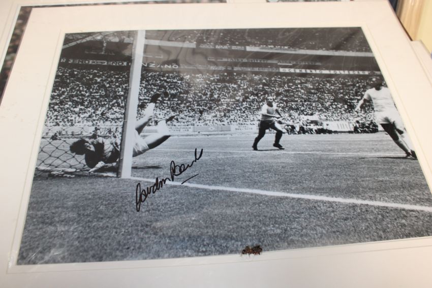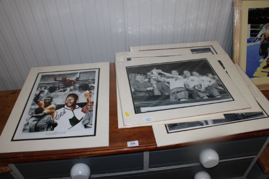 A collection of mounted photographs of footballers