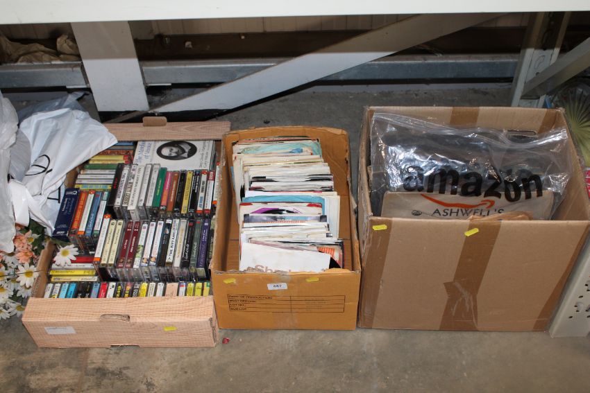 Three boxes containing various records and cassettes