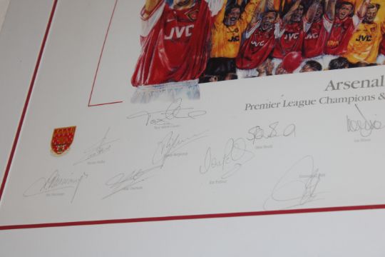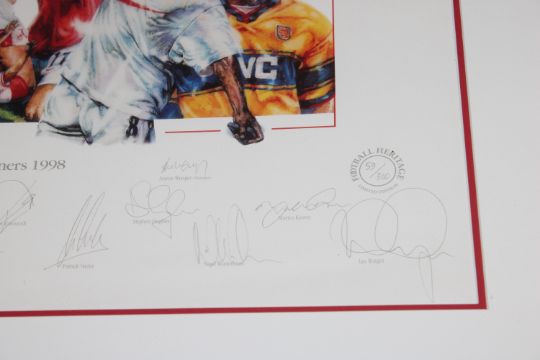 A limited Edition Arsenal print together with a framed print of Arsenal FC Premier League Champions and FA cup winners 1998